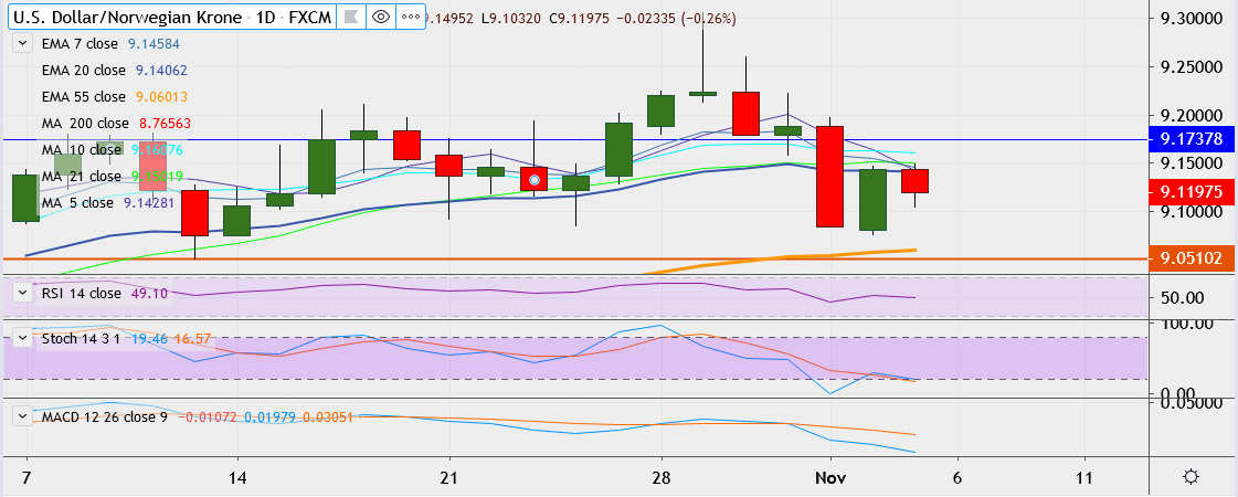 - On Monday, the pair fell as low as 9.0749 but found strong support at 55-EMA.