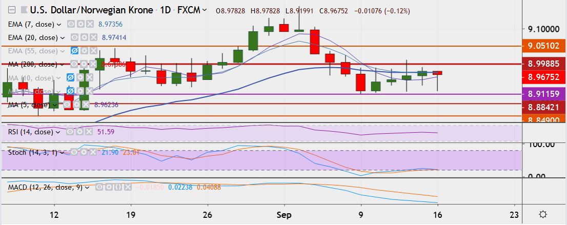 - On the downside, support is located at 8.9122 (September 9 Low) and any break below could take it till 8.8878/ 8.8490 (August 9 Low).