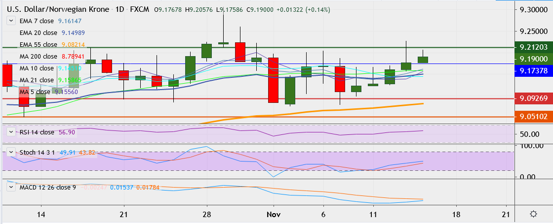 - On the downside, support is around 9.1579 (21-DMA), break below could take it till 9.1394 (5-DMA).