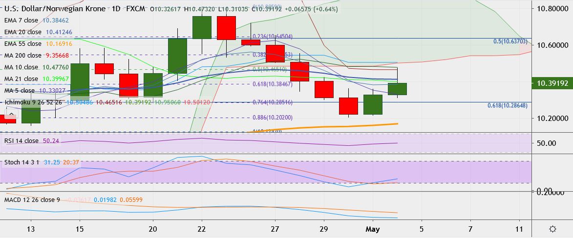 - On the downside, support is around 10.2820, break below could take it till 10.2402.