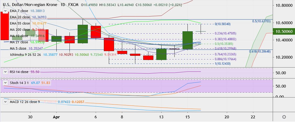 - On the downside, support is around 10.4511, break below could take it till 10.4080 (38.2% Fib).
