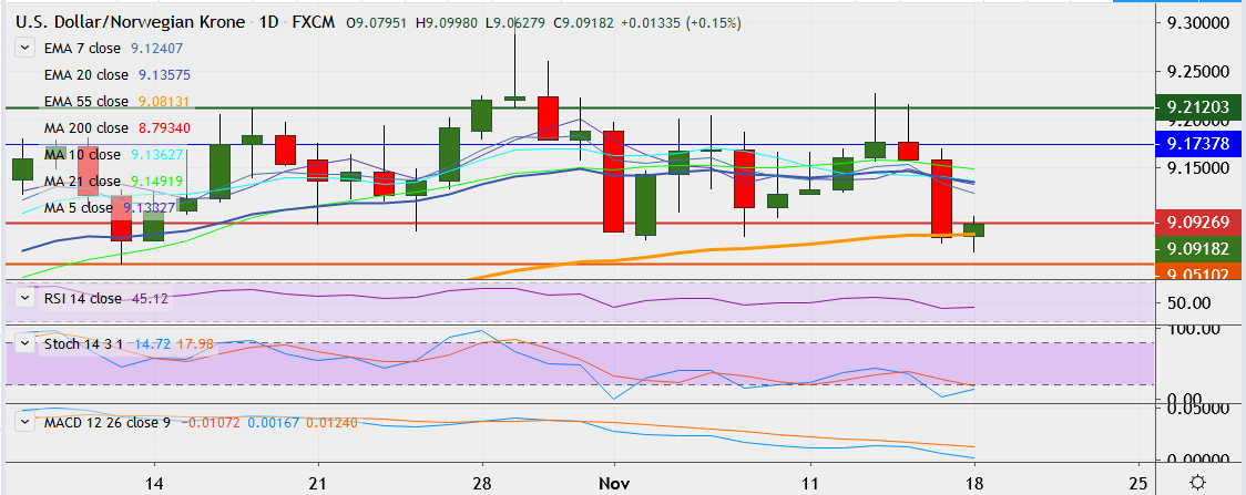- On the downside, support is around 9.0502, break below could take it till 9.0391.