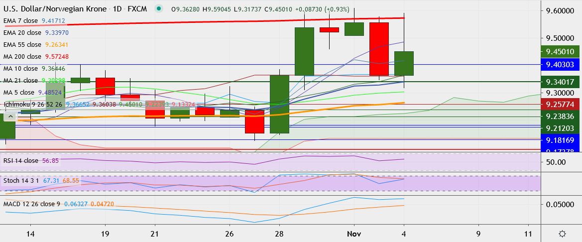 - On the downside, support is around 9.2985 (21-DMA), break below could take it till 9.2673.