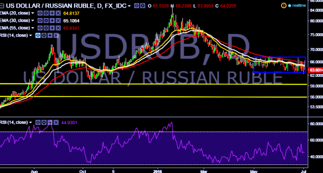 - USD/RUB is currently trading around 63.7250 levels.