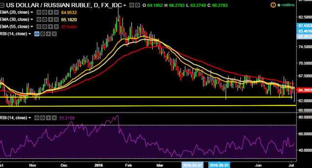 - Pair hits fresh 9 –month low at 61.73 marks but the movement was temporary and currently stabilises above 64.00 levels.