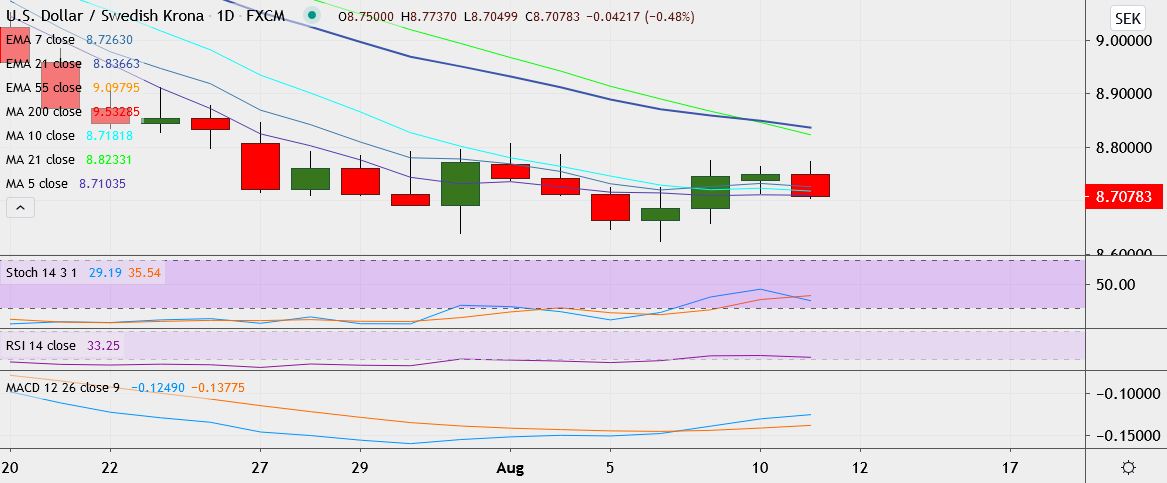 FxWirePro: USD/SEK halts 3-day rally, likely to break below 8.7000
