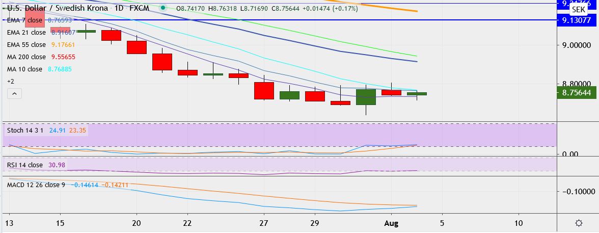 FxWirePro: USD/SEK retreats from 2-year trough, faces resistance at 8.8000