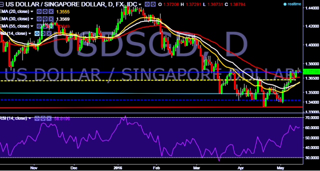 We prefer to take short position in USD/SGD only below 1.3698, stop loss 1.3772 and target 1.3628/ 1.3420 marks.