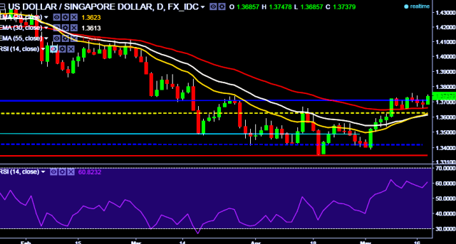 We prefer to take long position in USD/SGD only above 1.3740, stop loss 1.3695 and target 1.3772/ 1.3817 marks.