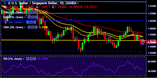 - USD/SGD is currently trading around 1.3510 marks.