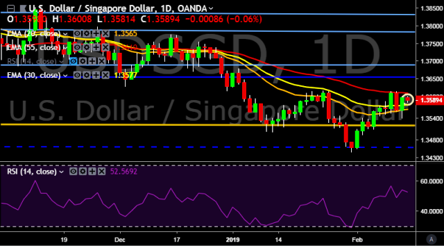 We prefer to take short position on USD/SGD around 1.3590, stop loss at 1.3615 and target of 1.3538.