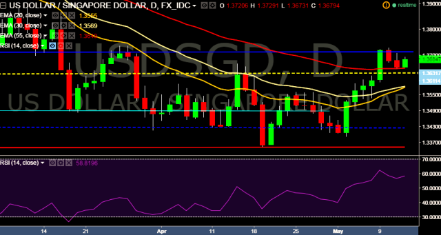 We prefer to take long position in USD/SGD around 1.3670, stop loss 1.3644 and target 1.3723/1.3805 marks.