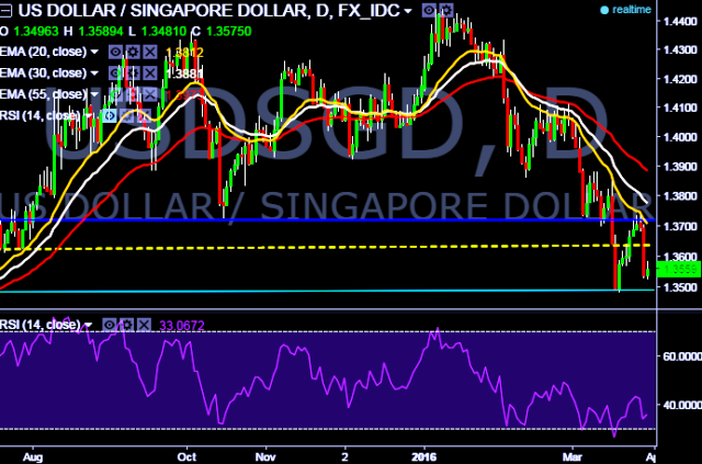We prefer to take long position in USD/SGD around 1.3550, stop loss 1.3525 and target 1.3628 levels.