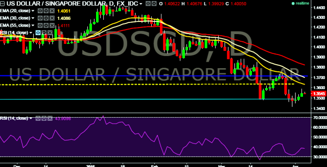 We prefer to take short position in USD/SGD around 1.3552, stop loss 1.3628 and target 1.3487/1.3415 marks.