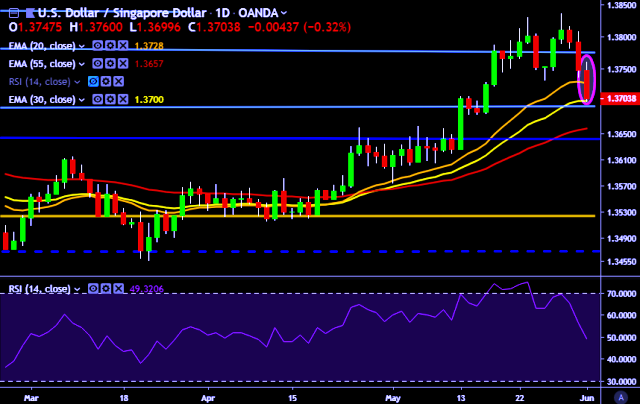 We prefer to take long position on USD/SGD around 1.3680, stop loss at 1.3650 and target of 1.3760/1.3838.