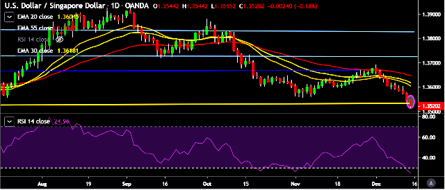 - USD/SGD is currently trading around 1.3520 marks.