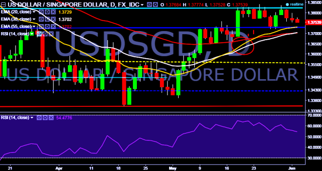 We prefer to take short position in USD/SGD only below 1.3748, stop loss 1.3799 and target 1.3628 marks.