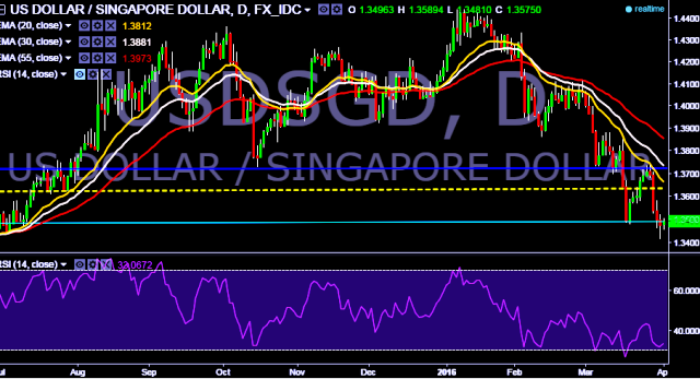 We prefer to take long position in USD/SGD around 1.3505, stop loss 1.3481 and target 1.3628 levels.
