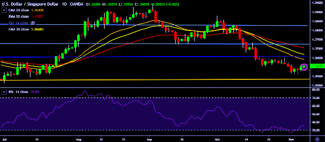 - USD/SGD is currently trading around 1.3603 marks.