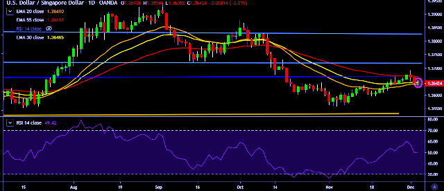 We prefer to take short position on USD/SGD only below 1.3636, stop loss at 1.3670 and target of 1.3590.