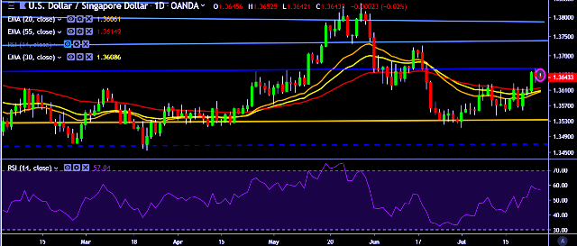 - USD/SGD is currently trading around 1.3644 marks.