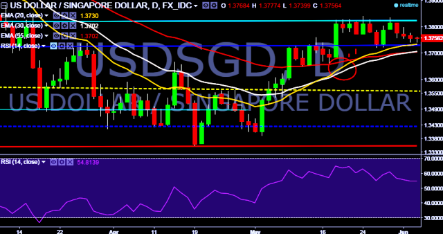 - USD/SGD is currently trading around 1.3755 marks.
