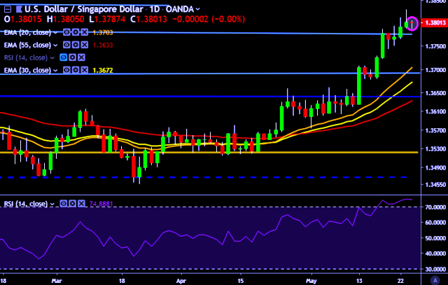 We prefer to take short position on USD/SGD around 1.3800, stop loss at 1.3830 and target of 1.3722.