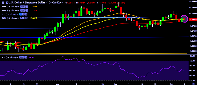 We prefer to take long position on USD/SGD only above 1.3820, stop loss at 1.3780 and target of 1.3855/1.3913.