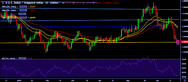 We prefer to take short position on USD/SGD around 1.3530, stop loss at 1.3570 and target of 1.3490/1.3454.