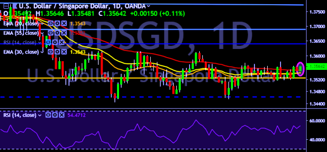 We prefer to take long position on USD/SGD around 1.3560, stop loss at 1.3540 and target of 1.3590/1.3615.