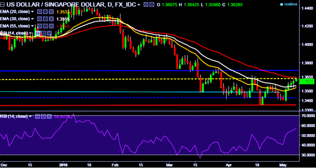 - USD/SGD is currently trading around 1.3624 marks.