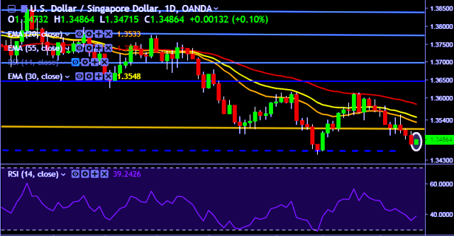 - USD/SGD is currently trading around 1.3484 marks.