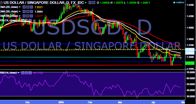 We prefer to take short position in USD/SGD only below 1.3488, stop loss 1.3561 and target 1.3420/1.3361 levels.