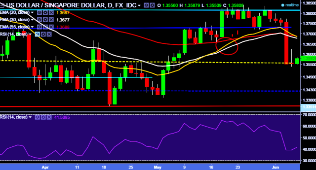 We prefer to take long position in USD/SGD around 1.3572, stop loss 1.3540 and target 1.3726 marks.