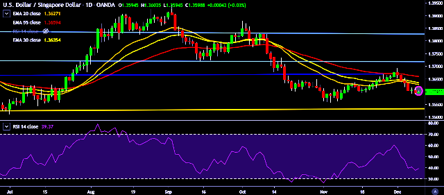 We prefer to take short position on USD/SGD only below 1.3590, stop loss at 1.3637 and target of 1.3570/1.3522.