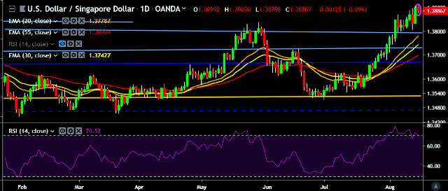 We prefer to take long position on USD/SGD around 1.3885, stop loss at 1.3860 and target of 1.3945/1.3984.