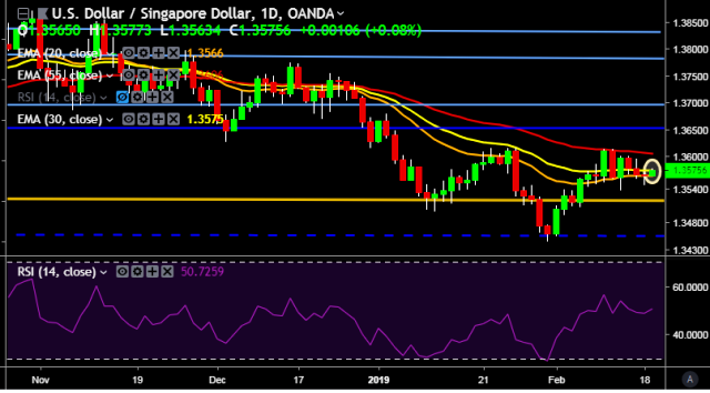 We prefer to take long position on USD/SGD around 1.3570, stop loss at 1.3550 and target of 1.3610.
