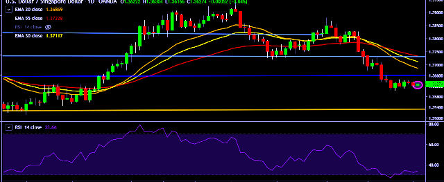 - USD/SGD is currently trading around 1.3627 marks.