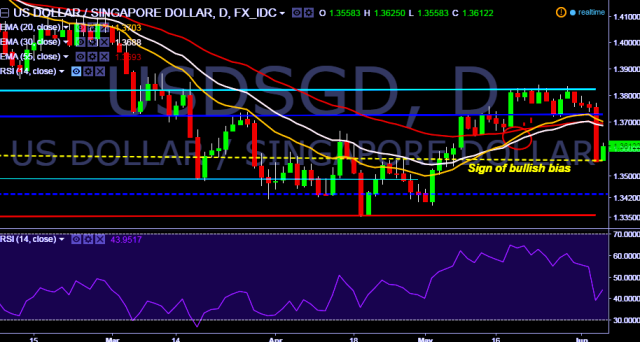 We prefer to take long position in USD/SGD around 1.3600, stop loss 1.3548 and target 1.3726 marks.
