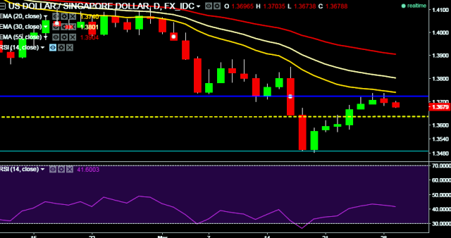 We prefer to take short position in USD/SGD around 1.3700, stop loss 1.3738 and target 1.3628/1.3576 levels.