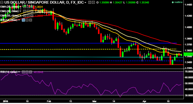 We prefer to take short position in USD/SGD around 1.3542, stop loss 1.3565 and target 1.3414/1.3361 levels.