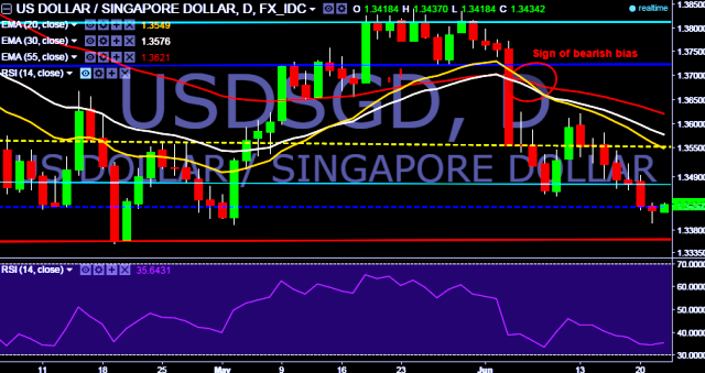 - USD/SGD is currently trading around 1.3426 marks.