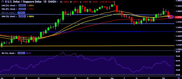 We prefer to take short position on USD/SGD only below 1.3780, stop loss at 1.3815 and target of 1.3738.