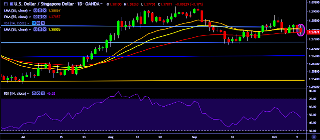 We prefer to take short position on USD/SGD only below 1.3770, stop loss at 1.3826 and target of 1.3738/1.37.