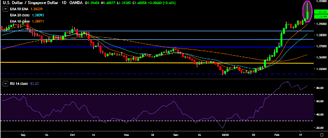 We prefer to take long position on USD/SGD around 1.3970, stop loss 1.3895 and target of 1.4128/1.4188/1.4234.