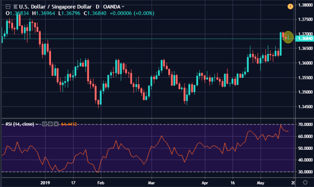 - It made intraday high at 1.3696 and low at 1.3679 levels.