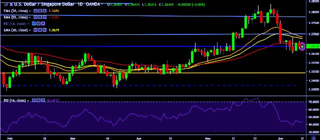 We prefer to take short position on USD/SGD only below 1.3622, stop loss at 1.3670 and target of 1.3570/1.3510.