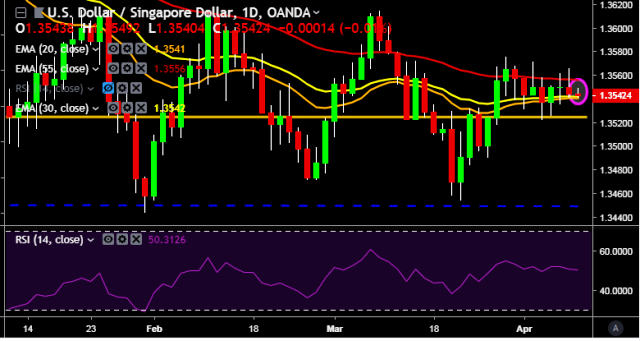 We prefer to take short position on USD/SGD only below 1.3538, stop loss at 1.3570 and target of 1.3490.