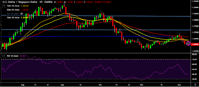 - USD/SGD is currently trading around 1.3605 marks.