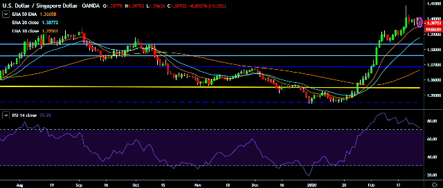 We prefer to take short position on USD/SGD around 1.3975, stop loss 1.40 and target of 1.3938.